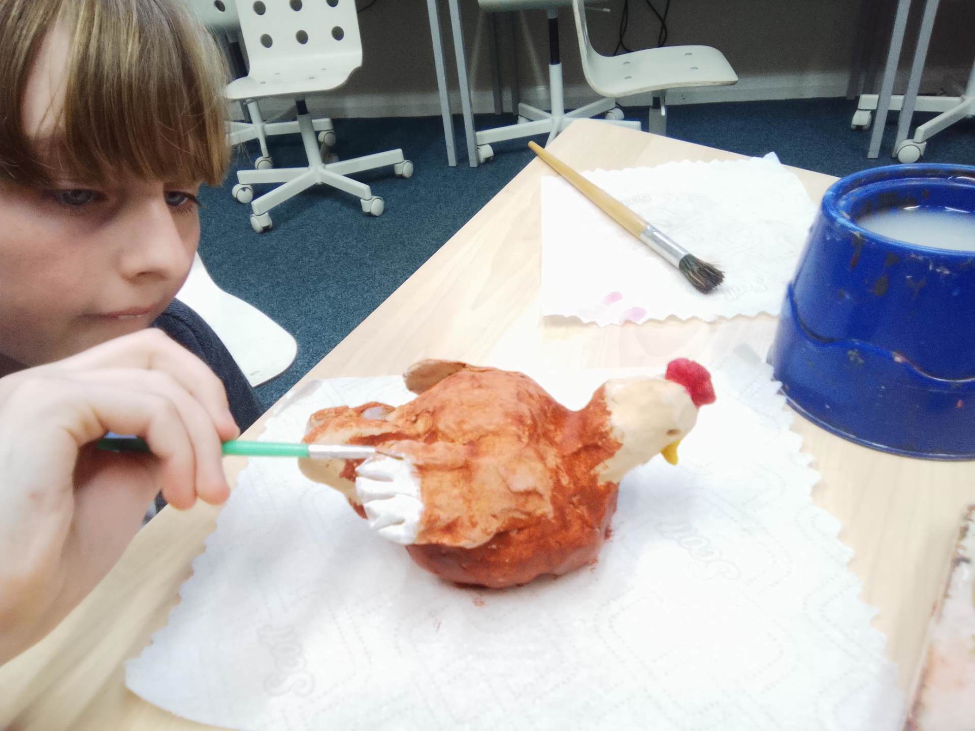To keep the spirit of our feathered friends alive, Mrs D came up with a brilliant idea — the children have been creating their very own pottery chickens! After all their hard work shaping and decorating them, the masterpieces were fired in her kiln and look absolutely fantastic.
