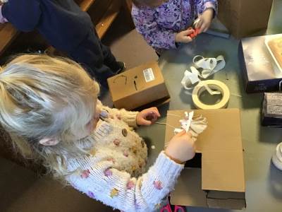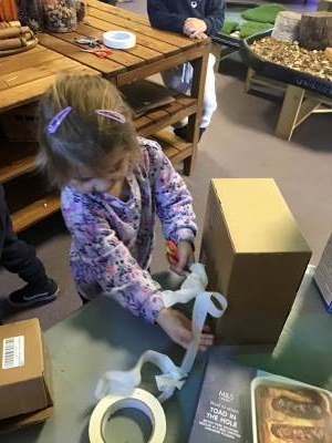 Inspired by these beautiful discussions, we then became busy little builders! We embarked on an exciting junk modelling project, creating our very own houses. This was a brilliant opportunity to explore different joining methods – taping, gluing, slotting, and connecting various recycled materials to construct structures of all shapes and sizes. The children showed incredible ingenuity and problem-solving skills as they designed and built their miniature homes, from cosy cottages to towering flats!