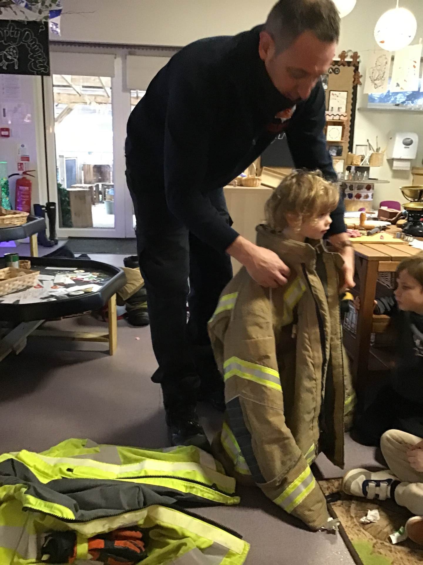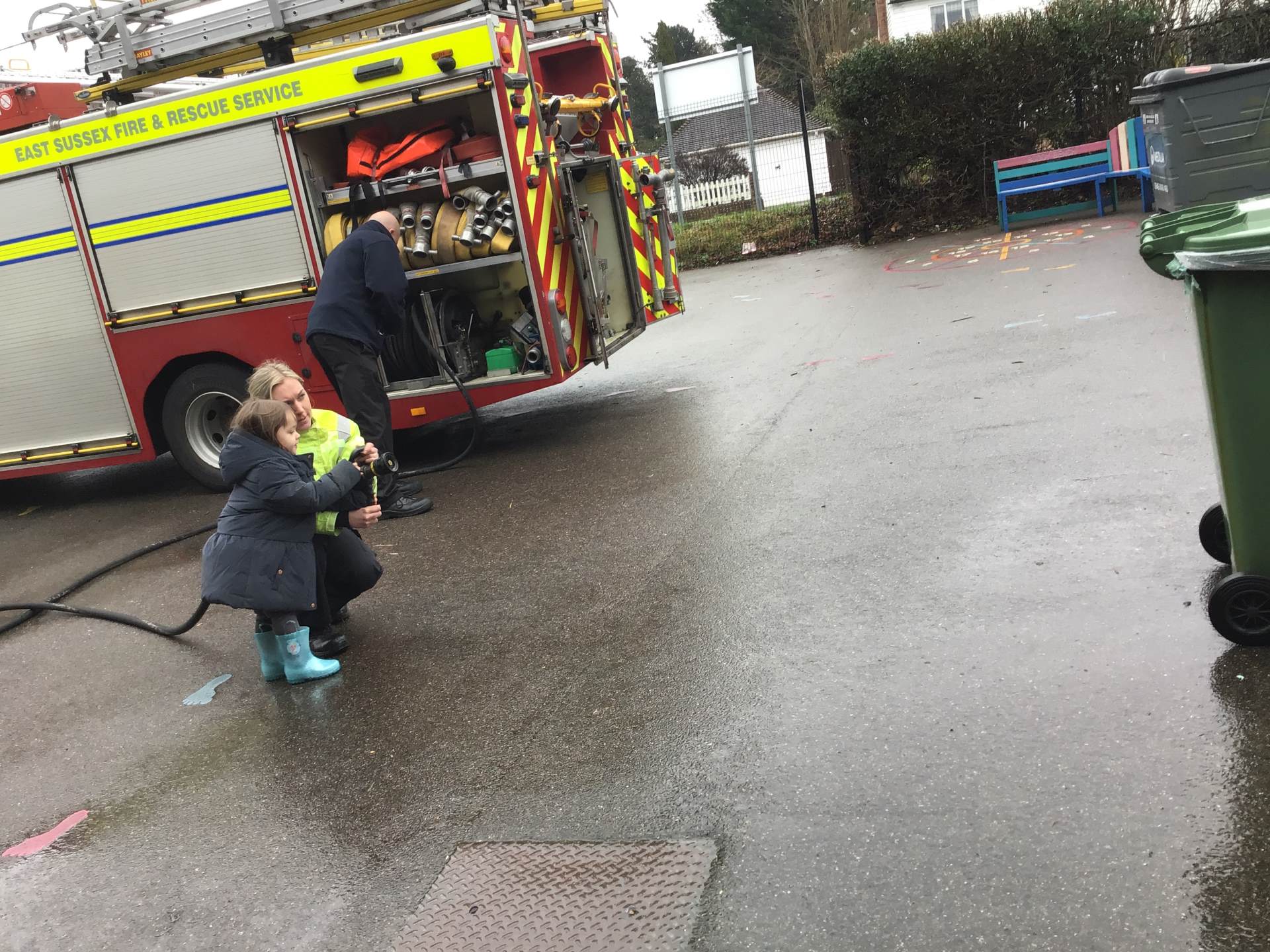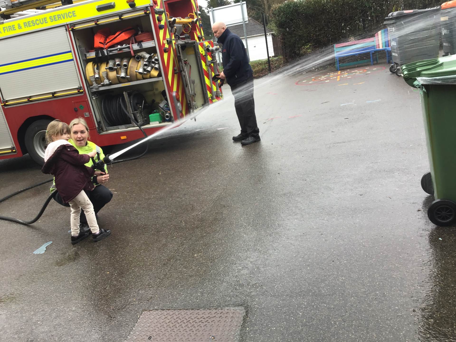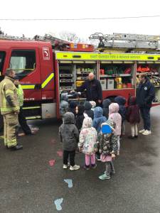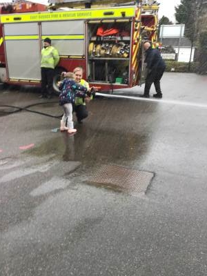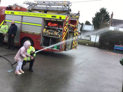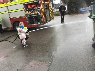 On Thursday, we were visited by the Fire Brigade, who brought along their magnificent fire engine for the children to climb aboard. The firefighters showed us their uniforms and explained the important work they do to keep us safe from fires. But the pièce de résistance was when the children got to have a go at being a firefighter, using the hose to put out "fires" - the squeals of delight were music to our ears! It was wonderful to see our little ones learning about the bravery and skill of our firefighters.