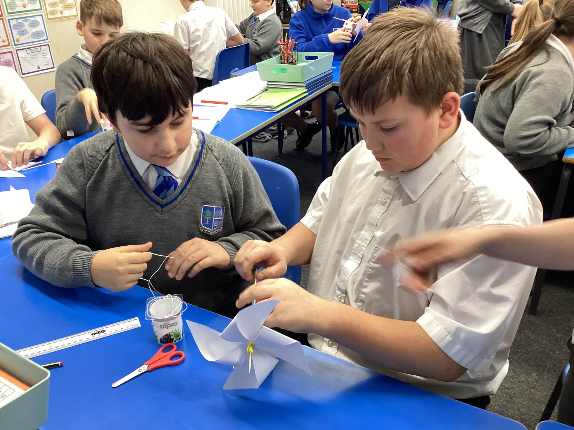 Last term the children in Copper Beech class made wind-powered pulley systems as part of their work on Forces. They were investigating how different types of machines use forces to help them to work.