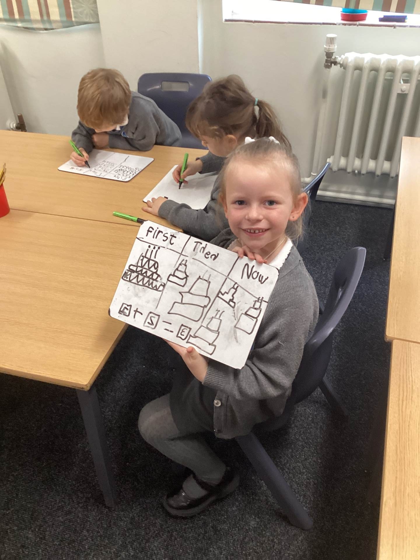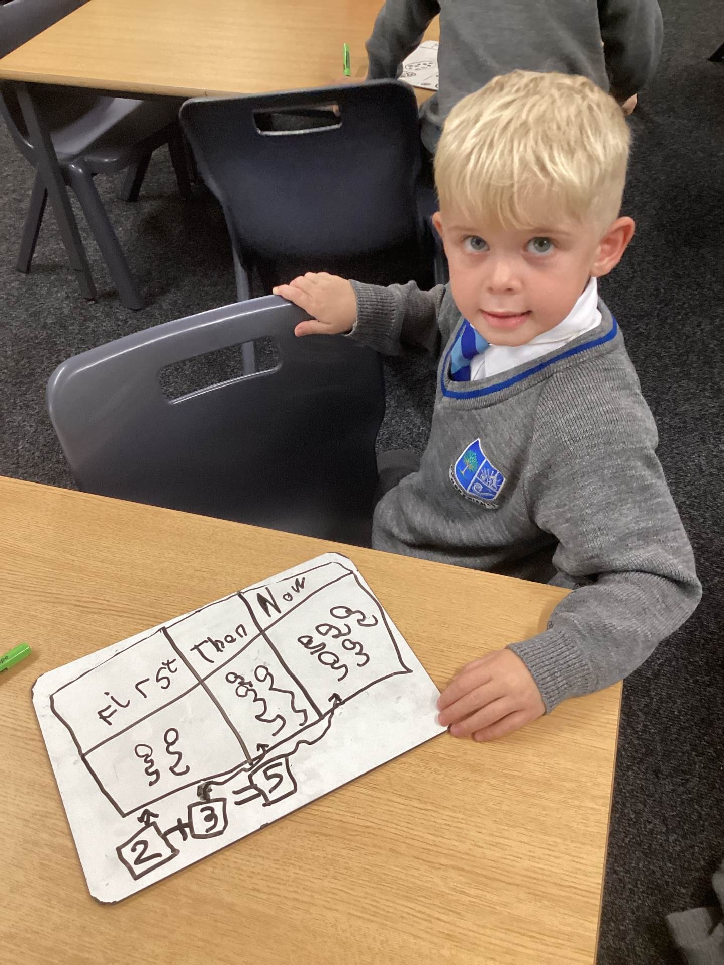 In Maths, we have been learning how to add more using the stem sentence “First…, then…, now…”. The children used concrete resources to create and share their own mathematical stories.
