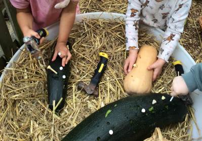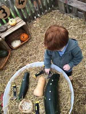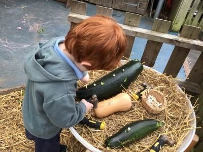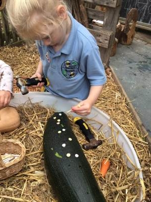Our maths minds have been buzzing, diving headfirst into the exciting world of "big and small." With our trusty friend Concept Cat by our side, we’ve been exploring what "large" truly means, comparing everything from our tiny fingers to the biggest leaves we could find. This foundational learning took on a truly hands-on dimension in our brand-new outdoor pumpkin patch! Here, amidst the vibrant orange and green, we’ve had countless practical opportunities to compare the size and weight of different pumpkins and marrows. Our gross motor skills got an incredible workout too, as we enthusiastically hammered golf tees into the giant marrows – a fantastic, noisy activity that had everyone giggling with concentration!
